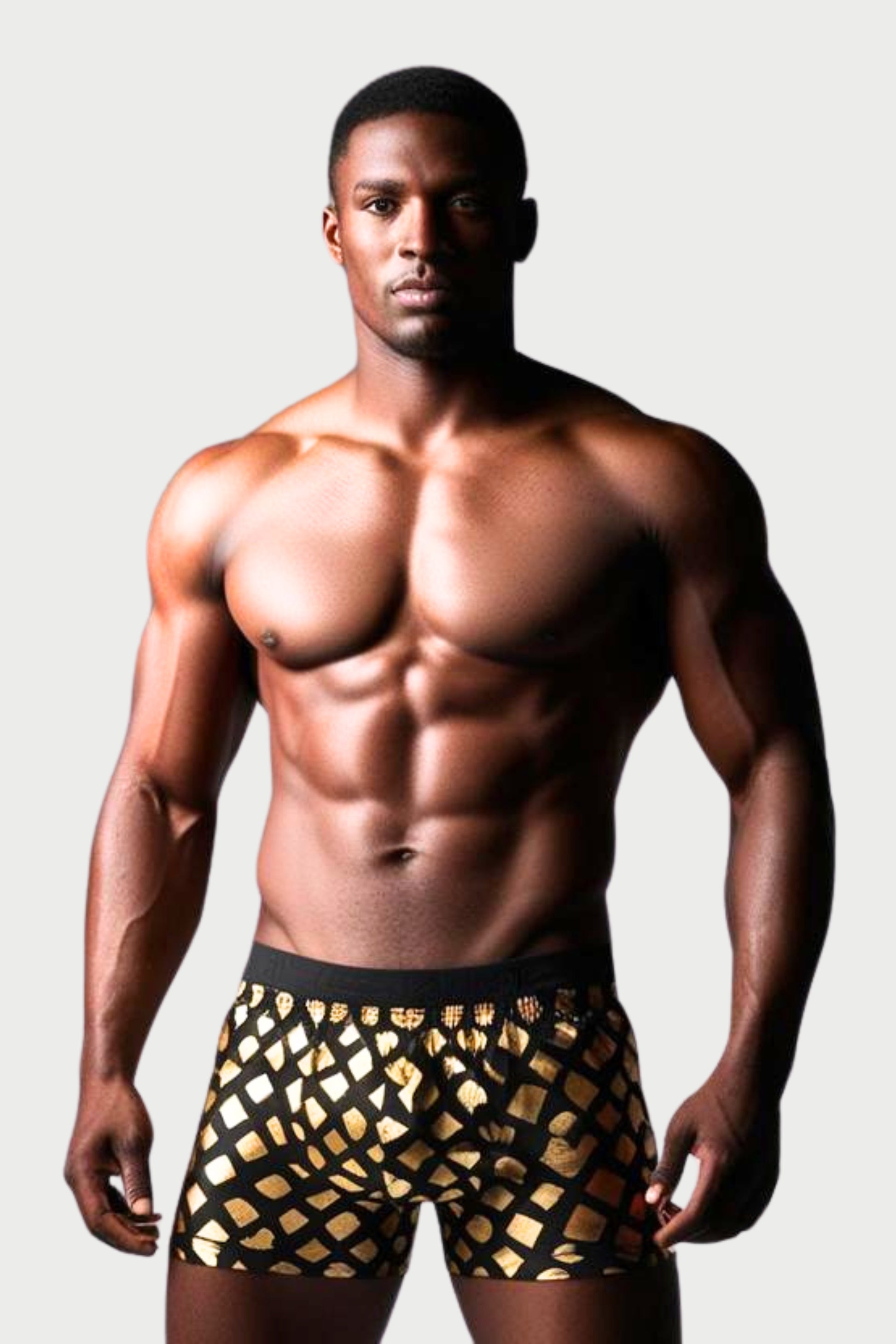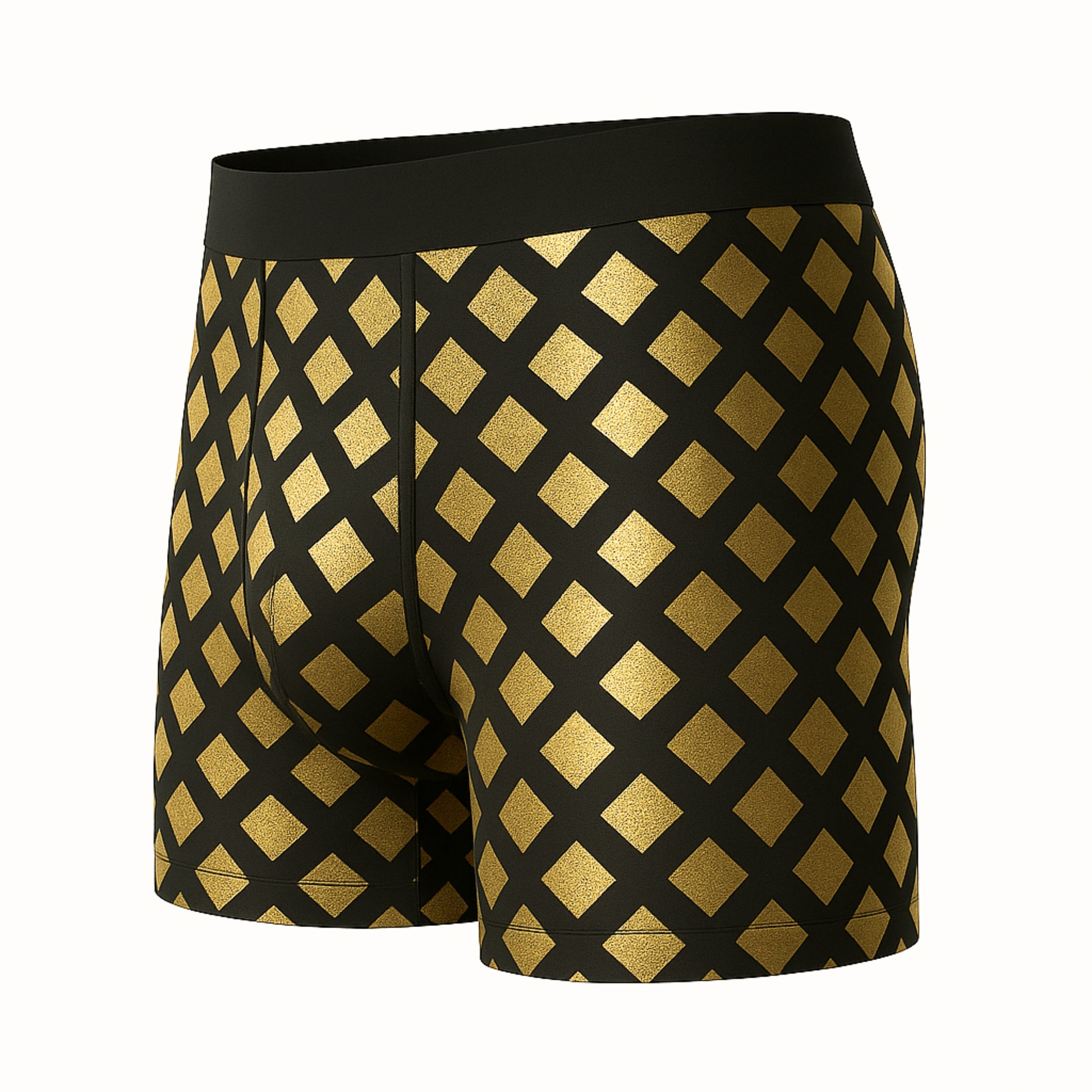 🖤Elevate your underwear game with these stylish men's boxer briefs featuring a bold black base adorned with a striking gold diamond pattern. Crafted for comfort and durability, they feature a snug black waistband and a modern, form-fitting design. Perfect for adding a touch of luxury to your everyday wear.